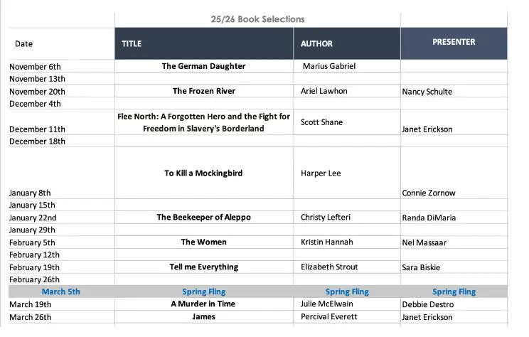 We’d like to invite you all to think about joining Book Club this year. We discuss a designated book every other week and talk about the boos you’re already reading on the other week. We meet Thursday afteroons at 1 PM in the Craft/card room in the Community Center.